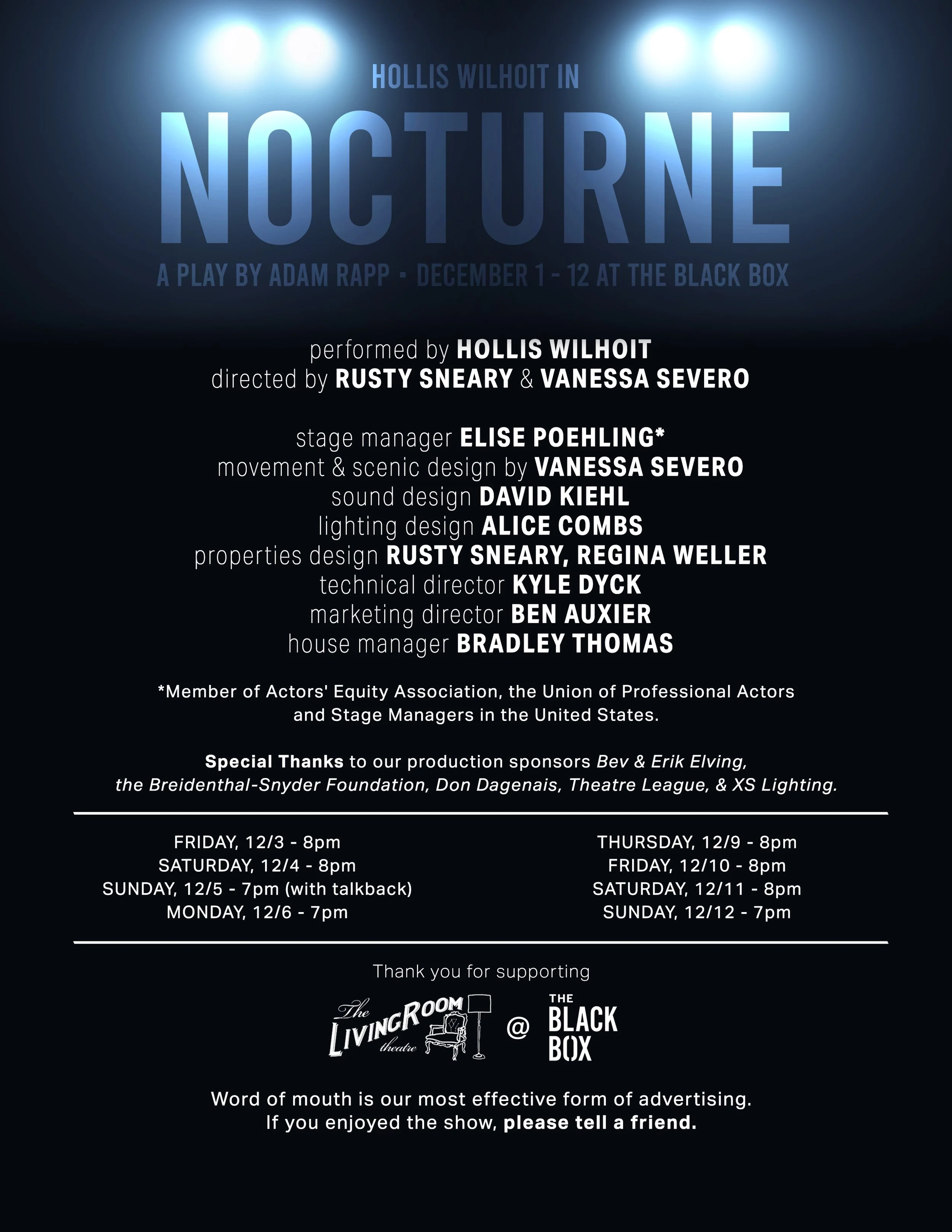 The pulitzer nominated work played a for a limited engagement at The Black Box, December 1 - 12, 2021.